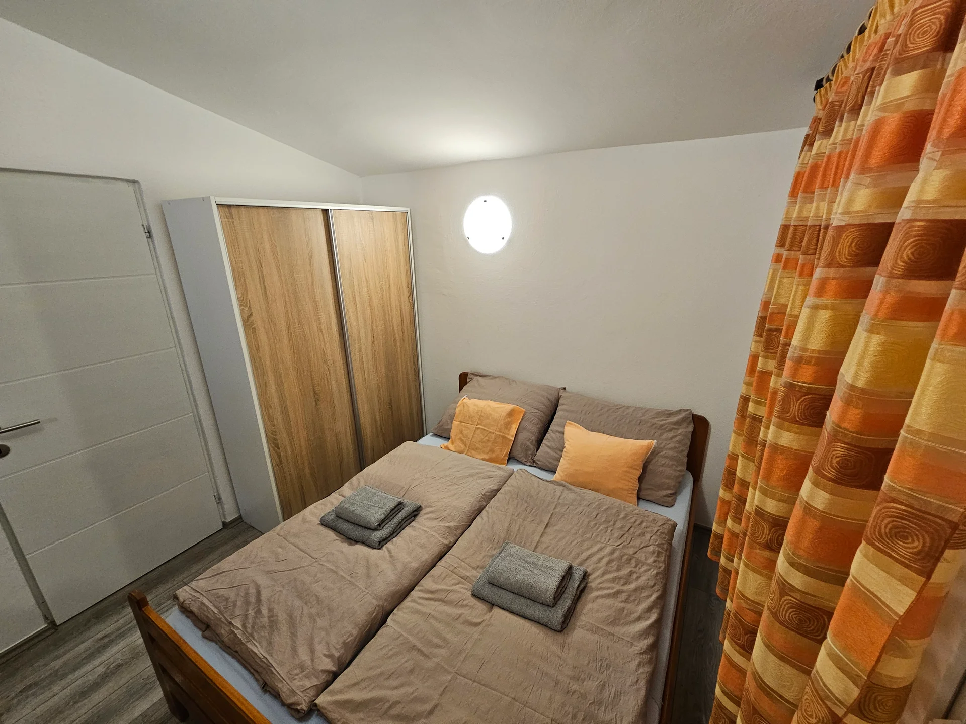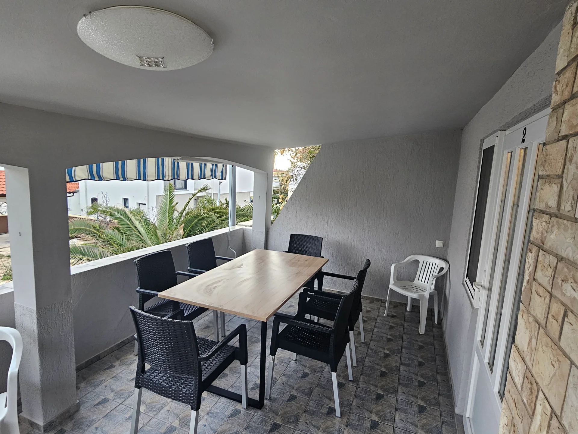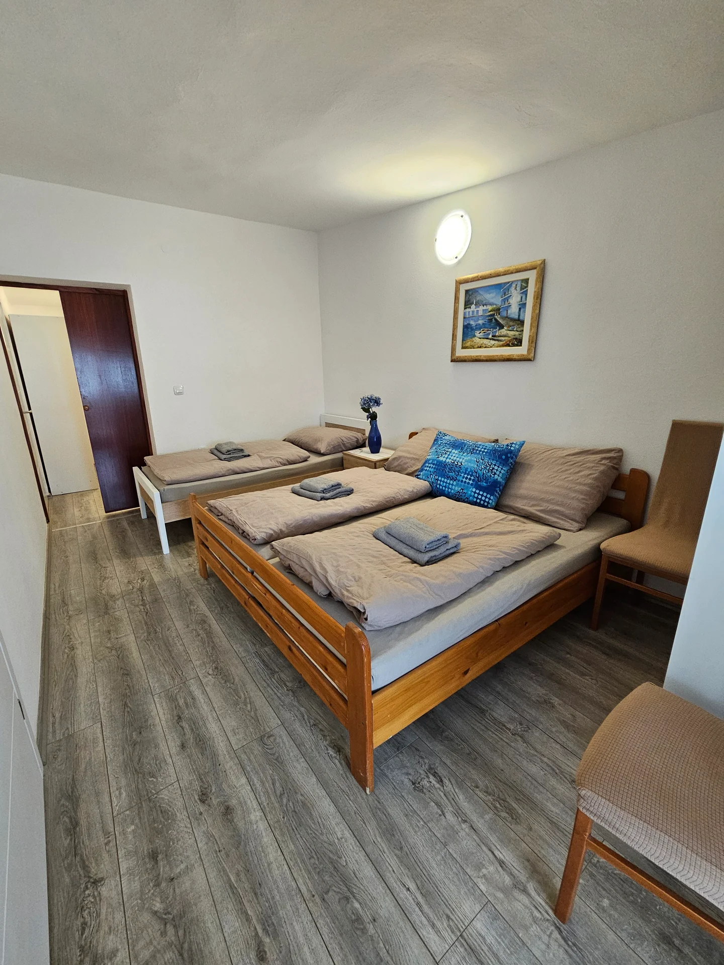 Enjoy elevated views and exceptional privacy in our largest upper-floor suite. This apartment is defined by its massive private terrace, offering the perfect setting for sunbathing or dining under the stars. This three-room unit is designed for larger groups who value space. The master bedroom includes a double and single bed, wardrobe, and private balcony access. A second bedroom features a double bed and wardrobe. The spacious living room doubles as a third sleeping area with a large sofa bed for two. The kitchen mirrors the high standards of the ground floor, fully equipped with a dishwasher, oven, and all necessary cookware. Modern comforts include air conditioning, free high-speed WiFi, and mosquito nets on all windows to ensure a peaceful night's sleep.